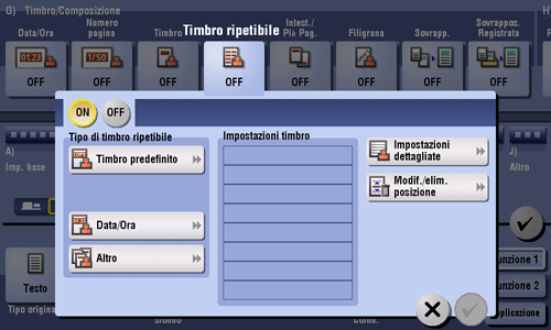 [ON]/[OFF] | Selezionare [ON] per stampare ripetutamente un timbro. |