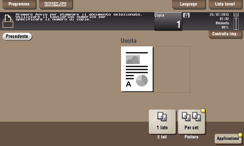 [Impostazioni base] | È possibile impostare un numero di copie, la stampa fronte-retro e la finitura, se necessario. |