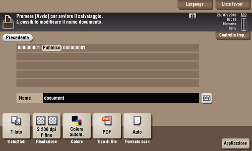 Questo esempio utilizza la casella utente pubblica a fini esplicativi. Per usare una casella utente personale o una casella utente di gruppo, fare clic su [Pers.] o [Gruppo] e selezionare la casella desiderata.