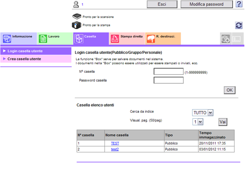 Accedere nel modo utente di Web Connection, quindi aprire una Box.