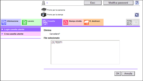 Se i file memorizzati in una casella utente non sono utilizzati, non sono eliminati automaticamente quando è trascorso il [Tempo eliminazione automatica documento] (predefinito: [1 giorno]).