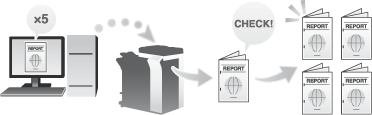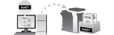 Poiché è necessario eseguire l'autenticazione nella macchina per stampare i dati salvati nella casella, questa funzione è adatta per la stampa sicura di documenti altamente riservati. Una volta eseguita l'autenticazione, i dati di stampa dell'utente di accesso sono stampati autenticamente. Ciò aumenta la sicurezza e assicura il funzionamento uniforme.