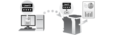 Quando si stampa un documento in un ambiente in cui è utilizzata l'autenticazione utente o la traccia account, occorre inviare le informazioni di autenticazione (nome utente e password) alla macchina per eseguire la stampa. Questo requisito limita gli utenti in grado di usare la macchina, impedendo l'uso non autorizzato da parte di terzi.