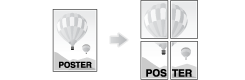 L'immagine originale è ingrandita, divisa e stampata su diversi fogli. Quando si uniscono i fogli stampati, si creerà un poster grande.