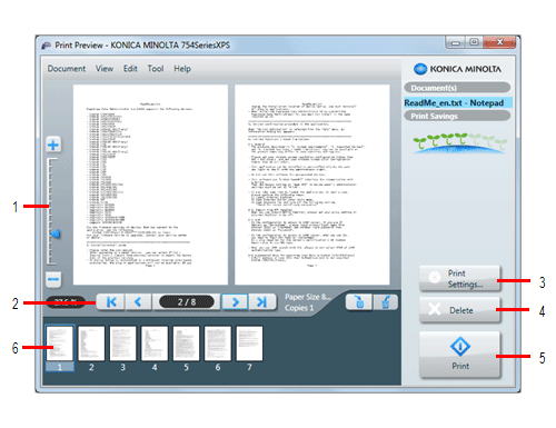 6 | Selezionare la pagina da visualizzare. È possibile eliminare la pagina o le pagine selezionate. |