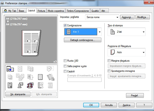 È possibile stampare diverse pagine ridotte sullo stesso lato di un singolo foglio al fine di utilizzare un numero inferiore di pagine di stampa.