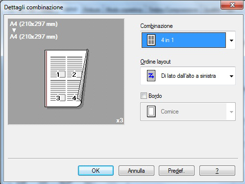 Se necessario, fare clic su [Dettagli combinazione...] per impostare l'ordine del layout di pagina e se inserire le linee bordo tra le pagine.