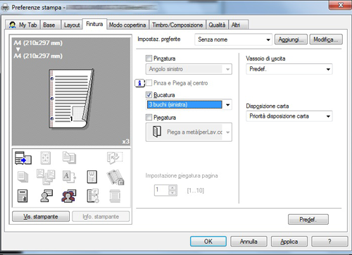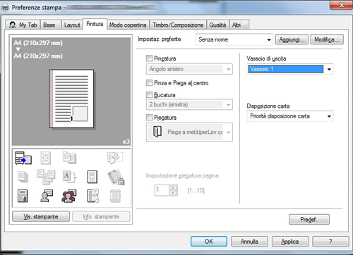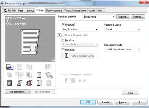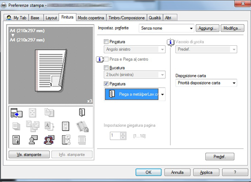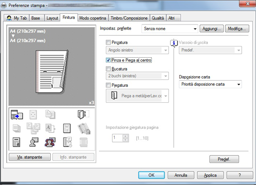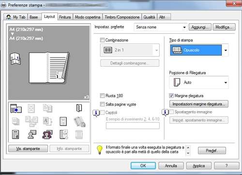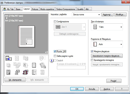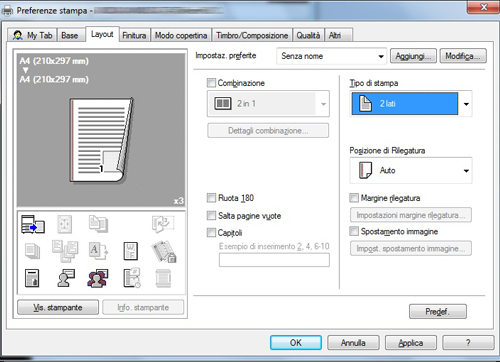 In [Tipo di stampa] all'interno della scheda [Layout], selezionare [2 lati]. [2 lato] è specificato in base alle impostazioni predefinite.