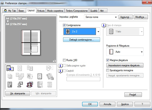 Utilizzando questa funzione in combinazione con la funzione Stampa fronteretro ([Tipo di stampa]: [2 lati]), è possibile risparmiare una maggiore quantità di carta.