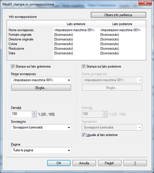 Quando si stampano delle immagini su entrambi i lati, selezionando la casella di controllo [Stesso valore per i lati anteriore/posteriore] si applicano le stesse impostazioni a entrambi i lati.