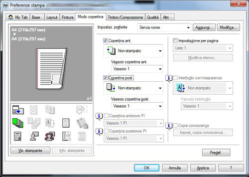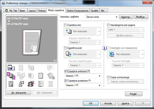 Nella scheda [Modo copertina], selezionare la casella di controllo [Copia conoscenza].