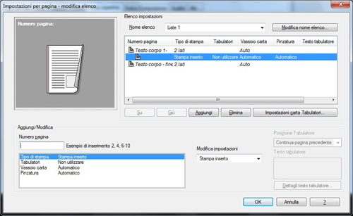 [Numero pagina] | Inserire i numeri di pagina da aggiungere. Per specificare diversi numeri di pagina, separare ogni numero di pagina con una virgola (per esempio, "2,4,6") oppure connettere i numeri per mezzo di un trattino (per esempio, "6-10"). | |