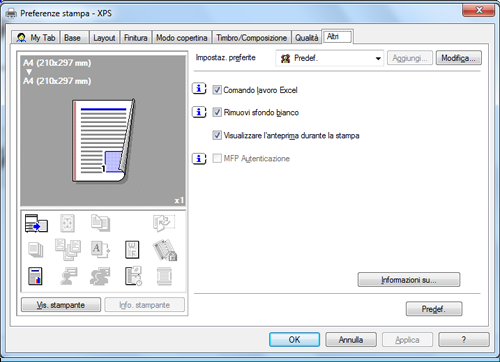 Il driver XPS ha la funzione di visualizzare in anteprima l'immagine di stampa per eseguire le opportune verifiche.