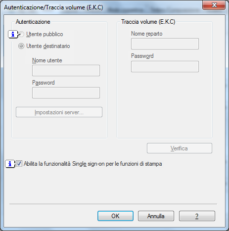 Se non sono state configurate correttamente, selezionare [Autenticazione] oppure [Traccia volume (E.K.C)] dall'elenco, quindi modificare la relativa impostazione in [Impostazione].