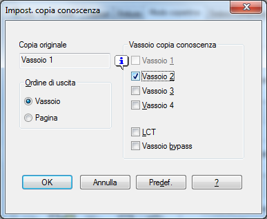 Specificare il vassoio carta per le copie conoscenza e l'ordine di uscita, quindi fare clic su [OK].