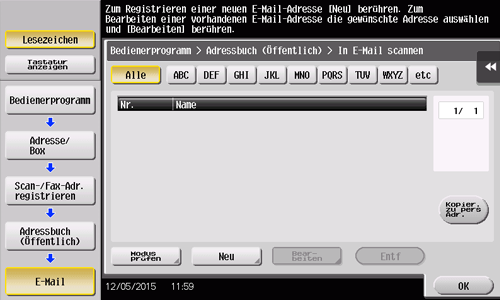 Wählen Sie [Scan-/Fax-Adr. registrieren] - [Adressbuch (Öffentlich)] aus.