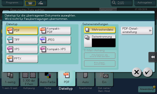 F7: Kann ich Daten in einem ausgewählten Dateityp oder einem ausgewählten Farbmodus senden?