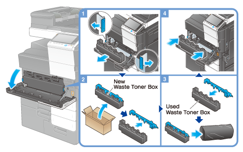 • Your service representative will collect your used Waste Toner Box. Place a cap on it, put it in a plastic bag, and store it in a box by itself.