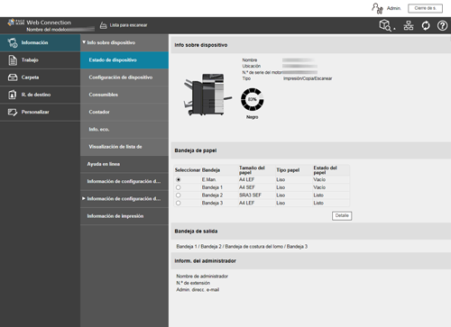 El usuario que tenga derechos de administrador puede iniciar sesión en esta máquina en modo Administrador. Para obtener más información, consulte Aquí.