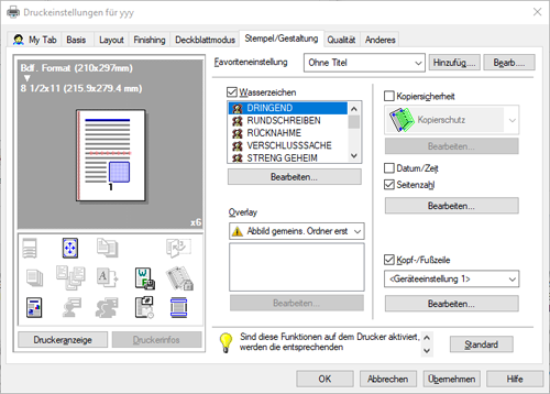 [Overlay] ist nur verfügbar, wenn der Druckertreiber für Windows verwendet wird.