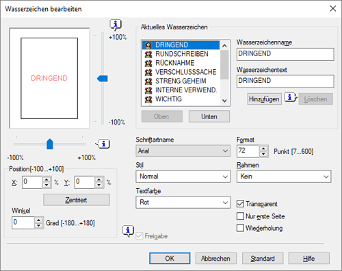 [Textfarbe] | Wählen Sie die Farbe des Wasserzeichens. |
