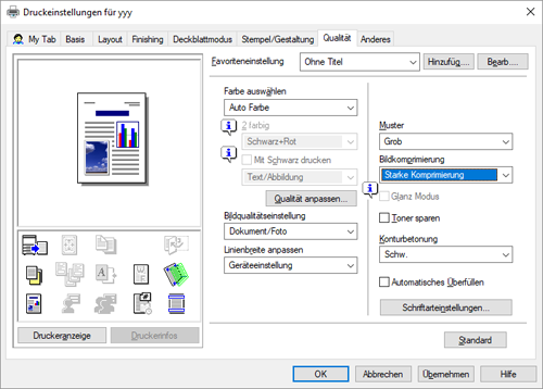 Geben Sie unter [Bildkomprimierung] auf der Registerkarte [Qualität] an, ob die Qualität oder die Druckgeschwindigkeit Priorität hat, wenn die im Original enthaltenen Bilddaten komprimiert sind.