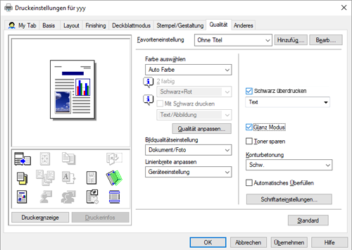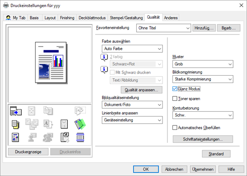 Aktivieren Sie auf der Registerkarte [Qualität] das Kontrollkästchen [Glanz Modus].