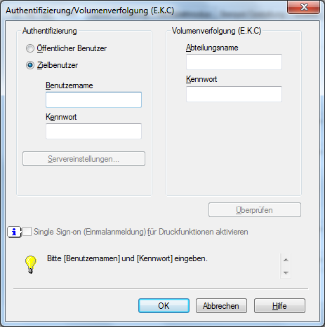 Der auf dem PC angegebene Anmeldename wird im Feld [Benutzername] angezeigt.