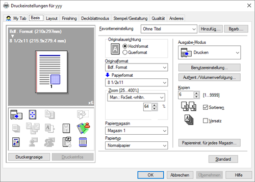 Mit einem einzelnen Auftrag können Sie ein Dokument mit einer Länge von bis zu 2999 Seiten ausdrucken.