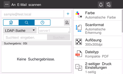 Für die Verwendung der LDAP-Suche muss eine entsprechende Voreinstellung eingerichtet werden. Ausführliche Informationen über den Einrichtungsvorgang finden Sie Hier.