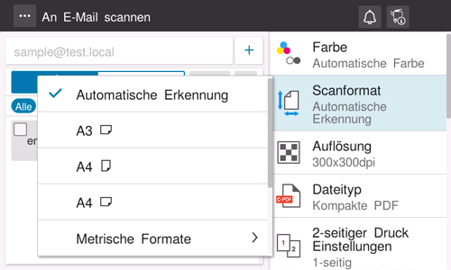Wenn das Format des Originals nicht ordnungsgemäß erkannt wird, geben Sie das Format des Originals, das Sie verwenden möchten, manuell an.