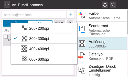 Wählen Sie eine Auflösung für das Scannen des Originals.