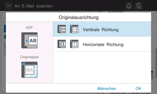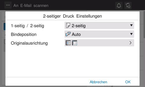 Geben Sie beim Scannen eines 2-seitigen Originals die Ausrichtung des eingelegten Originals an, so dass die vertikale Richtung des gescannten Originals korrekt festgelegt ist.