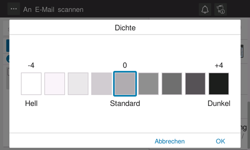 Passen Sie die Dichte (Dunkel oder Hell) für das Scannen des Originals an.