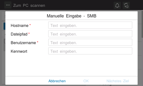 [Dateipfad] | Geben Sie den Namen des freigegebenen Ordners auf dem unter [Hostname] angegebenen Host ein (max. 255 Byte).