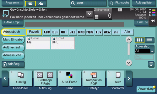 Wenn [URL] als Sendeziel ausgewählt ist, können Sie nicht gleichzeitig ein anderes Ziel angeben.