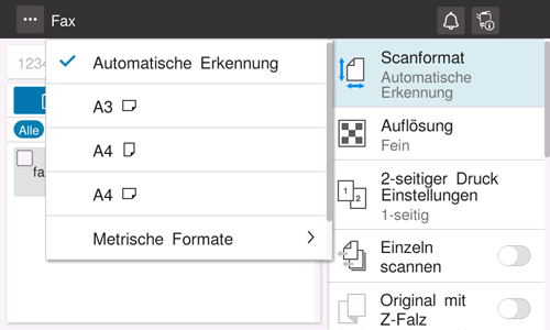 Wenn ein gefalztes Original in den ADF eingelegt wird, wird das Originalformat unter Umständen nicht richtig erkannt. Zum Scannen des gefalzten Originals über den ADF setzen Sie diese Option auf EIN.