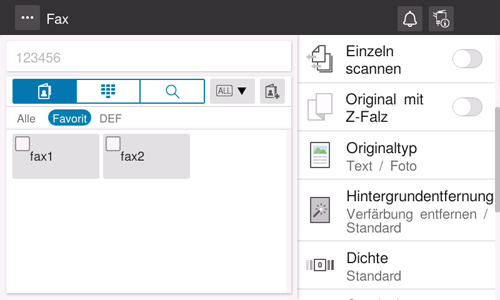 Wenn die Anzahl der Originalblätter so groß ist, dass die Blätter nicht gleichzeitig in den ADF eingelegt werden können, können Sie sie auch in mehreren Durchgängen als einen zentralen Auftrag verarbeiten. Sie können das Original auch abwechselnd über den ADF und das Vorlagenglas scannen.