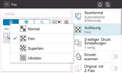 [Superfein] | Wählen Sie diese Option zum Scannen von Originalen, die kleine Zeichen oder Grafiken enthalten. |