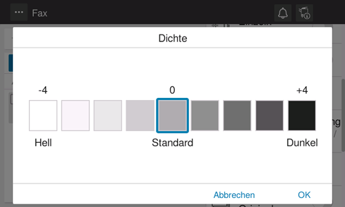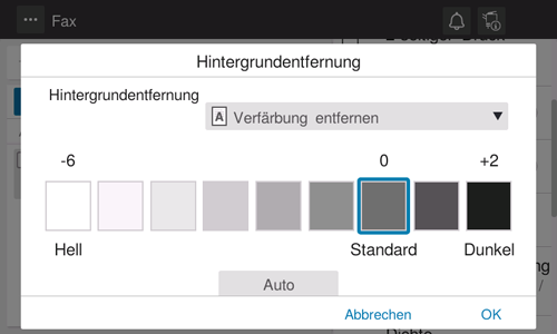 Sie können bei Originalen mit Farbhintergrund (Zeitung, Recycling-Papier etc.) sowie bei Originalen, die so dünn sind, dass Text oder Bilder auf der Rückseite gescannt würden, die Dichte des Hintergrunds einstellen.