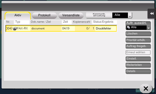 Wenn das Problem nicht zügig behoben werden kann, wird das gespeicherte Faxdokument an ein anderes Ziel weitergeleitet.
