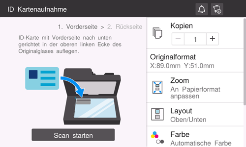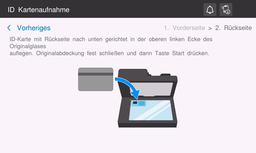 Verwenden Sie die Start-Taste, um die Rückseite der Karte zu scannen, und starten Sie den Kopiervorgang.
