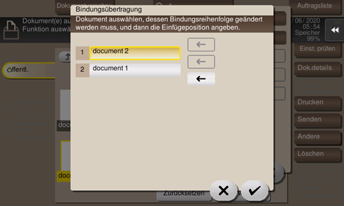 Ändern Sie gegebenenfalls die Dateireihenfolge (Bindungsübertragungssequenz) und tippen Sie auf [OK].
