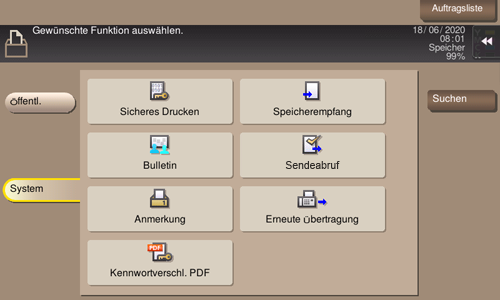 Tippen Sie auf [System] - [Sicheres Drucken].