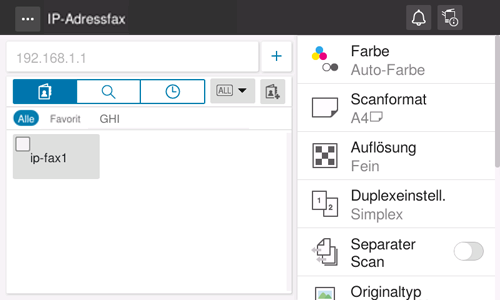 Tippen Sie im Startbildschirm auf [IP-Adressfax].
