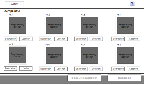 Die Liste der auf diesem System registrierten Stempeldaten wird angezeigt.