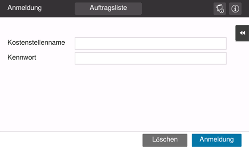 Geben Sie den Kostenstellennamen und das Kennwort ein.
