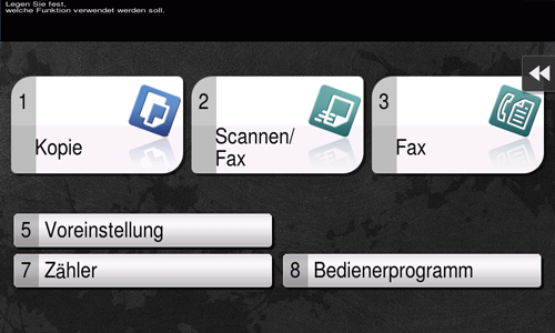 [Kopieren] | Zeigt den Hauptbildschirm im Kopiermodus an. Ausführliche Informationen finden Sie Hier. |