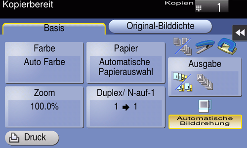Informationen über die Festlegung eines zu kopierenden Originals finden Sie Hier.