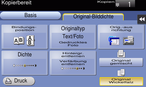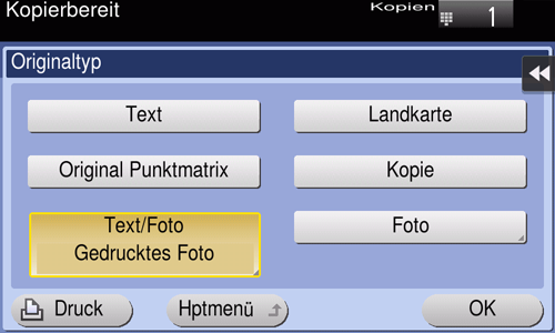 Wählen Sie die optimalen Einstellungen für das Kopieren des Originals mit der optimalen Bildqualitätsstufe.